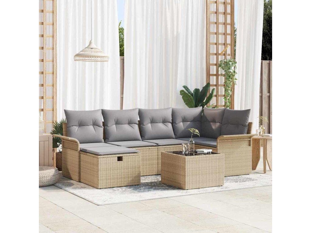 Sada zahradních pohovek 7 pcs Béžová a Světle šedá polyratan 3358889