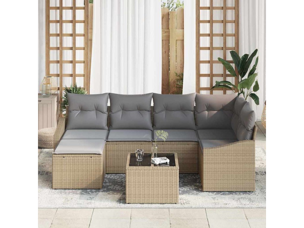Sada zahradních pohovek 7 pcs Béžová Poly ratan 3346800