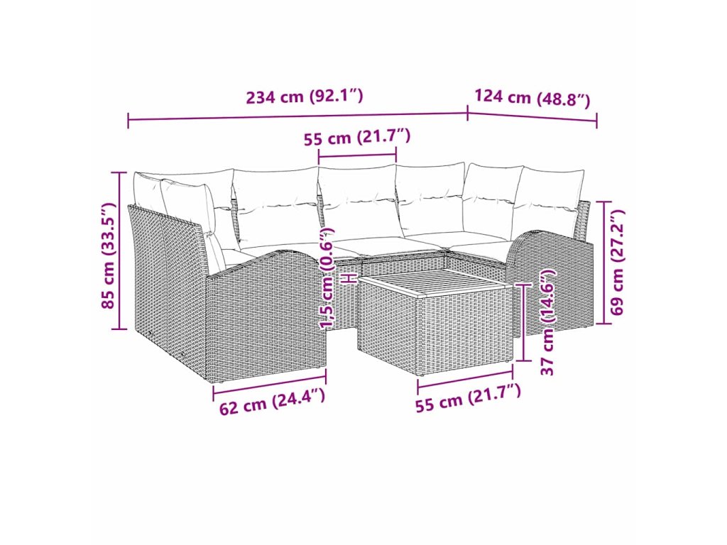 Sada zahradních pohovek 7 pcs Béžová Poly ratan 3347532