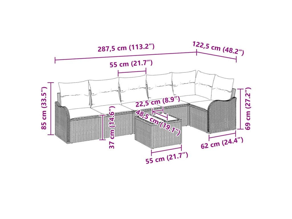 Sada zahradních pohovek 7 pcs Béžová polyratan 3345731