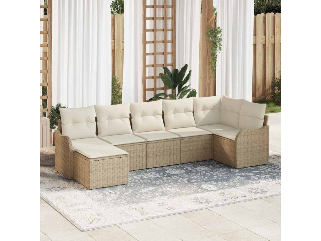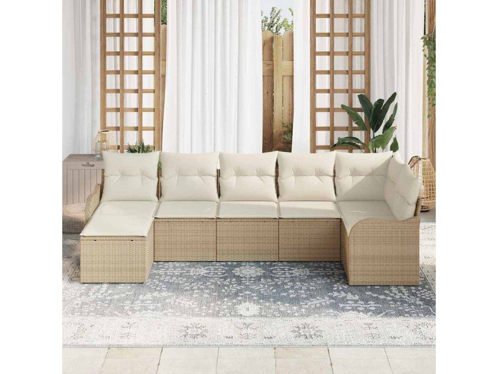 Sada zahradních pohovek 7 pcs Béžovo-bílá Poly ratan 3354460