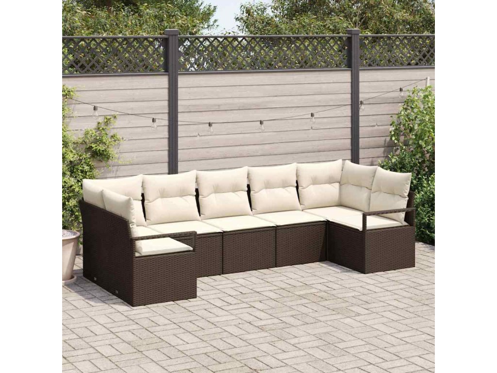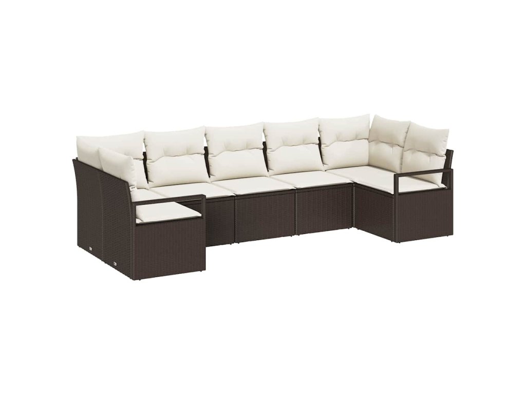 Sada zahradních pohovek 7 pcs Hnědá a bílá polyratan 3355197