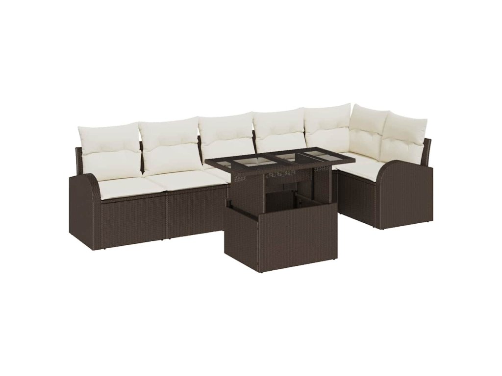 Sada zahradních pohovek 7 pcs Hnědá a krémová polyratan 3348654