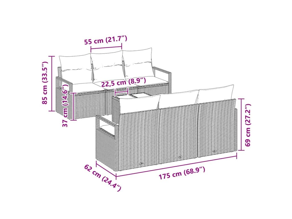 Sada zahradních pohovek 7 pcs Hnědá a krémová polyratan 3354937