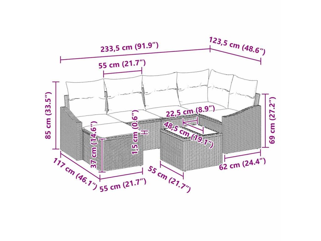 Sada zahradních pohovek 7 pcs Šedá Poly ratan 3346799