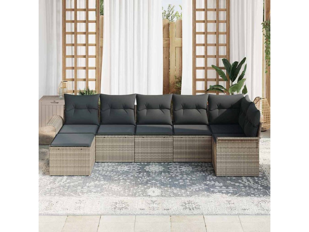Sada zahradních pohovek 7 pcs Světle šedá Poly ratan 3345452