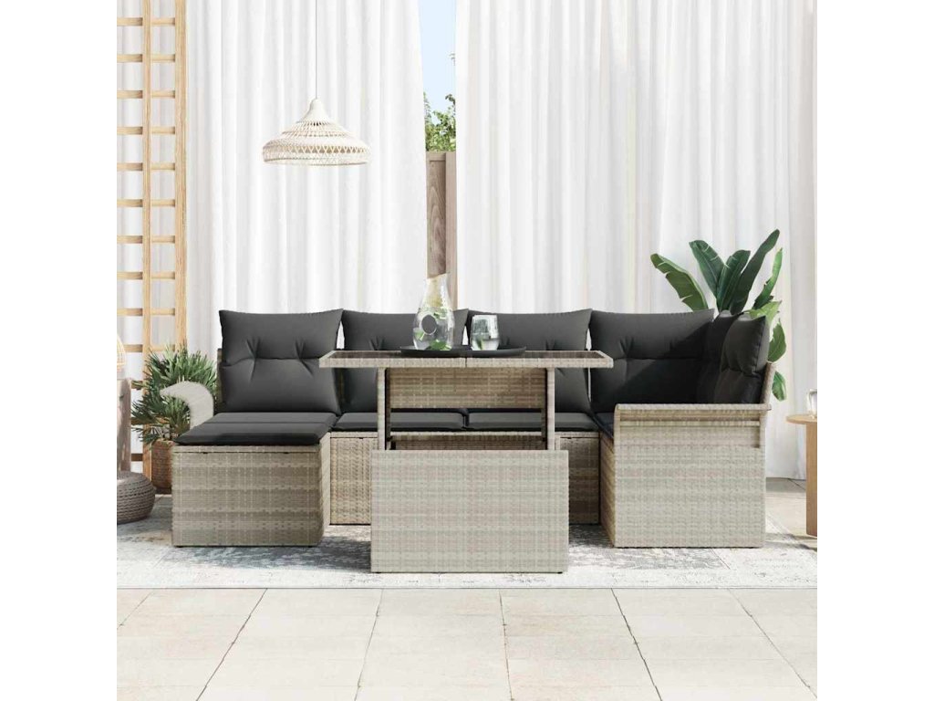 Sada zahradních pohovek 7 pcs Světle šedá Poly ratan 3348318