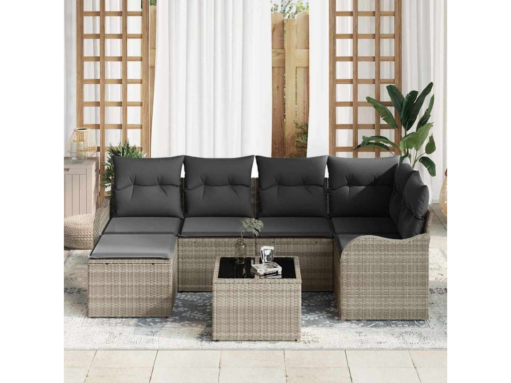 Sada zahradních pohovek 7 pcs Světle šedá Poly ratan 3354451