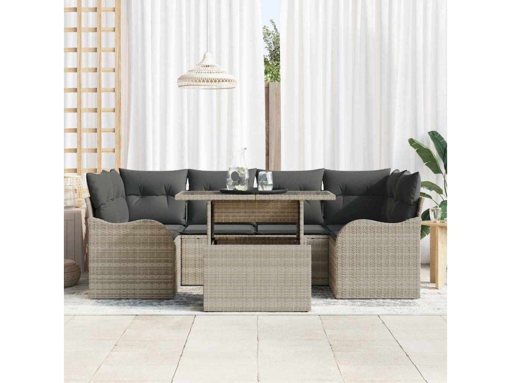 Sada zahradních pohovek 7 pcs Světle šedá Poly Ratan 3357135