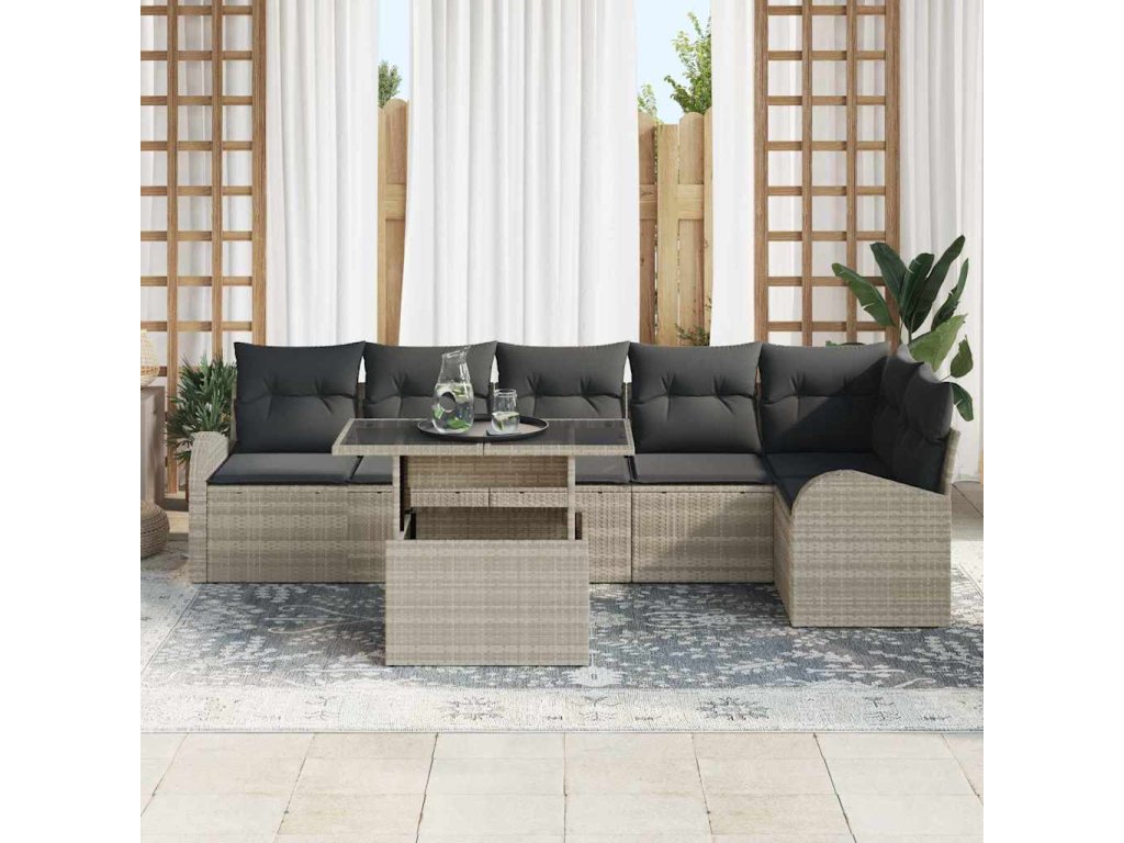 Sada zahradních pohovek 7 pcs Světle šedá Poly ratan 3357395