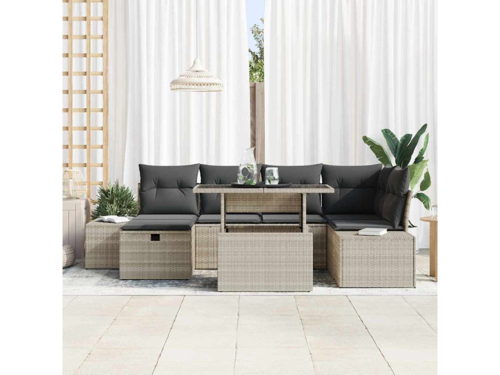 Sada zahradních pohovek 7 pcs Světle šedá Poly ratan 3359879
