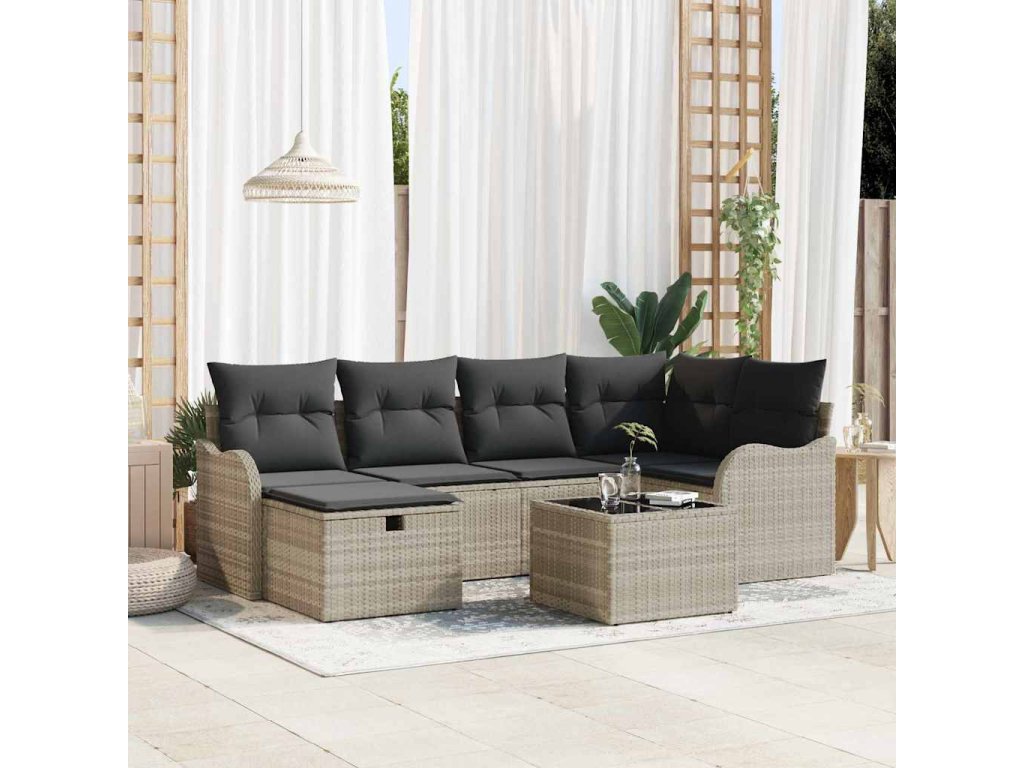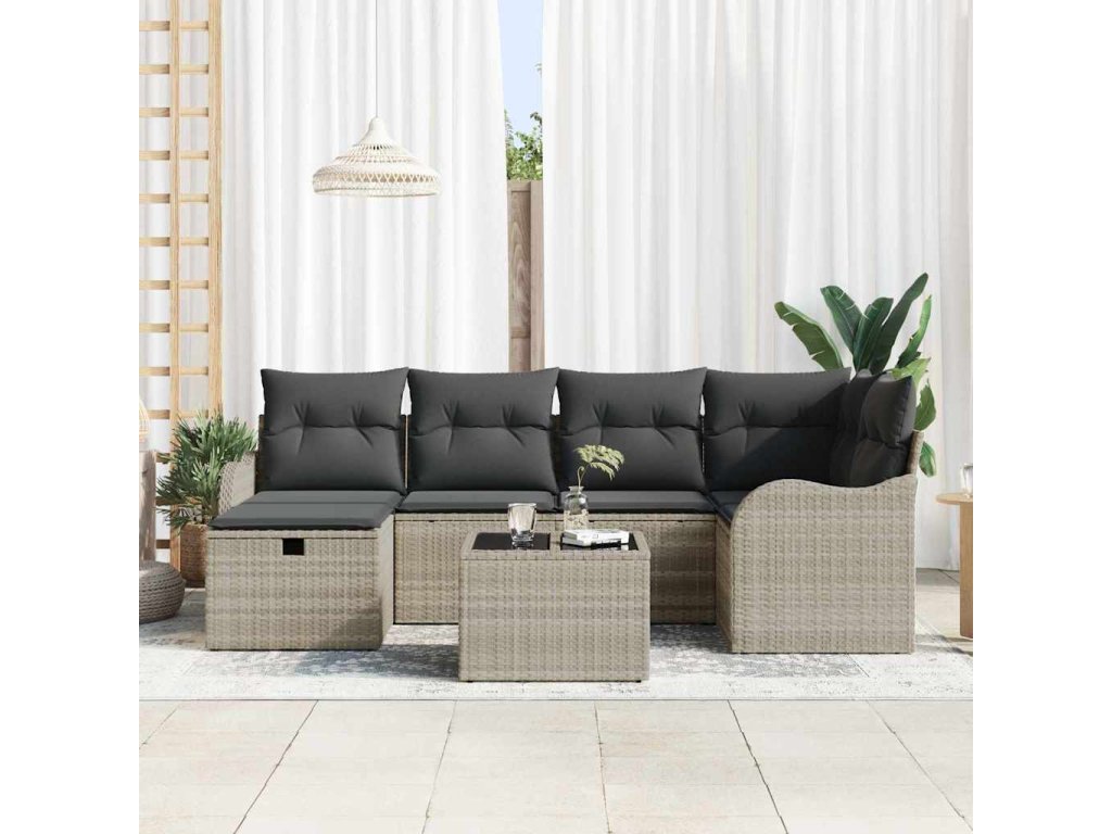 Sada zahradních pohovek 7 pcs Světle šedá Poly ratan 3360323