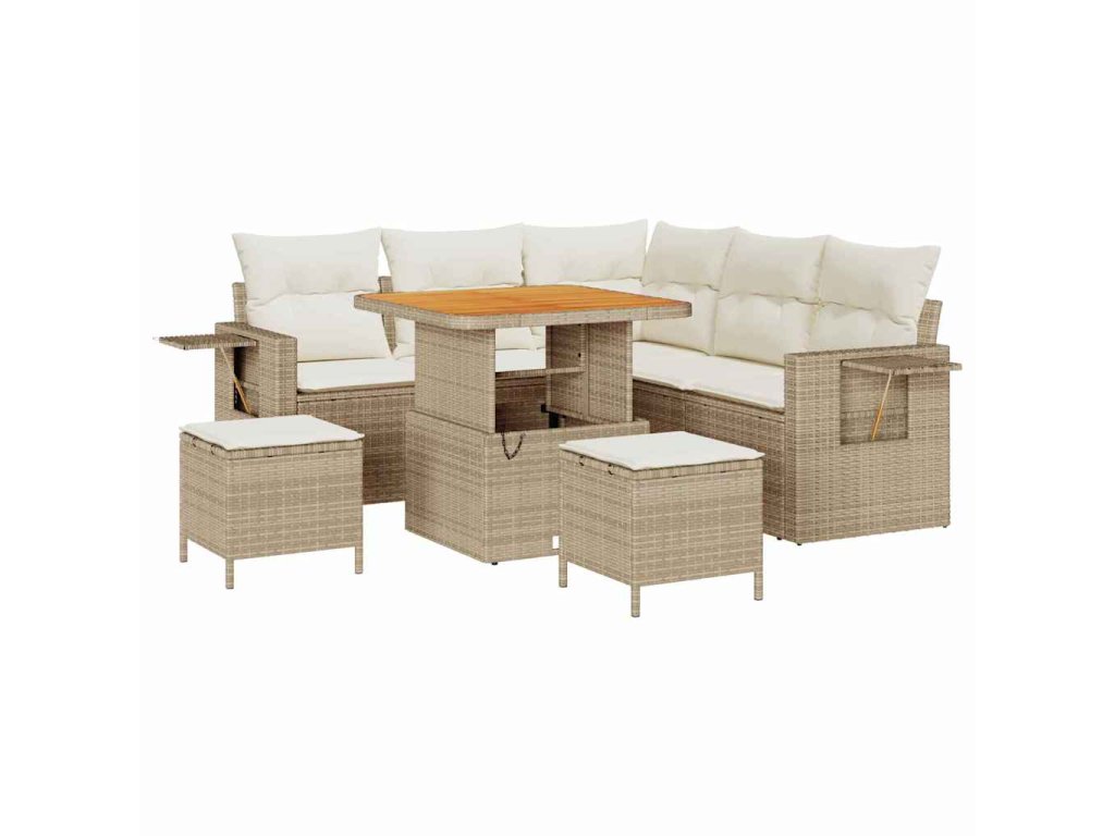 - Součásti: Sada má pevnou konstrukci díky práškově lakovanému ocelovému rámu, akáciovému vrchnímu panelu a poly ratanovým opěradlům. Ploché opěrky jsou pohodlné a polštáře přidávají na komfortu během slunečných dní. Každý prvek přispívá k odolnosti a pohodlí pro skvělý zážitek ze sezení.