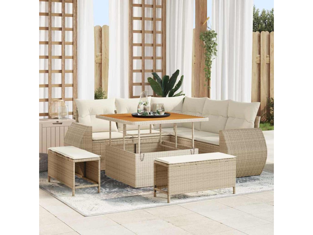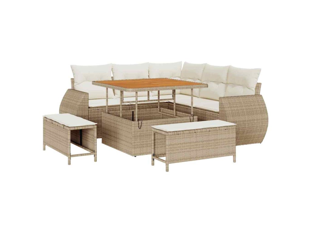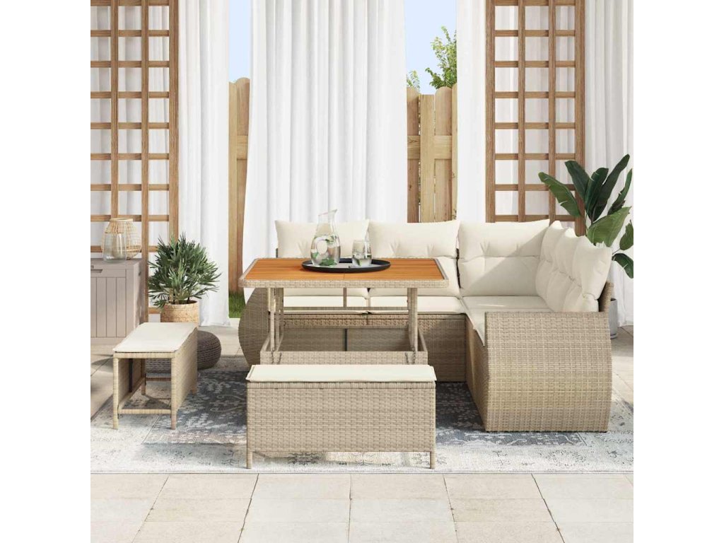 - Materiál poly ratan: Tato zahradní souprava je vyrobená z poly ratanu, je super odolná vůči počasí a vydrží dlouho. Její styl a pevnost dělají z poly ratanu skvělou volbu pro zahradu.
