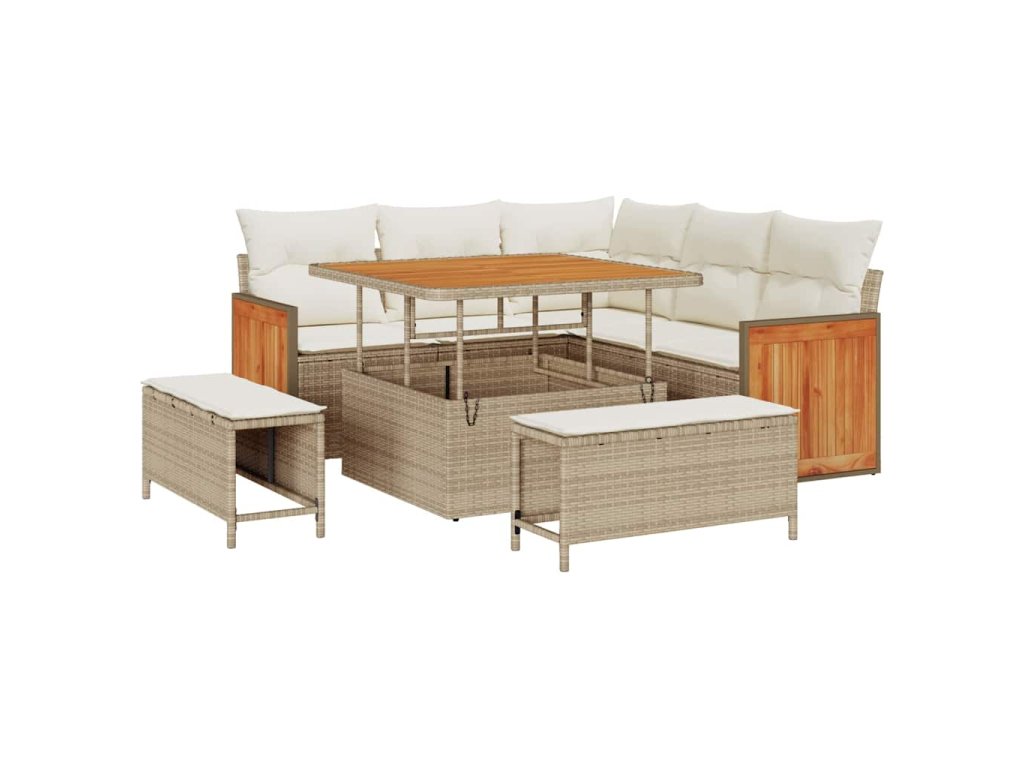 Super materiály: Z poly ratanu a pevných akáciových částí, tohle je pohovkový set, co vydrží. Odolá dešti i slunci a vypadá prostě skvěle – hodí se do každého stylu zahrady. Co v sadě najdete: Tento zahradní pohovkový set zahrnuje dvě pohovky s područkami, jedno rohové sezení, dvě středové sedačky, dva dlouhé taburety a stůl. Můžete mixovat kousky dohromady nebo samostatně, což vám dává spoustu šancí na kreativní uspořádání pro vaši venkovní plochu. Moderní design: S jednoduchým a praktickým stylem se set pyšní čistými liniemi a málo ozdobami. Ocelový rám a dřevo z hnědého akácie jednoduše zapadají do současných trendů zahradního nábytku. Snadná údržba: Tento set je bezva na údržbu. Když ho zrovna nepoužíváte, stačí na něj hodit ochranný obal, aby vypadal pořád dobře, ať už je jakékoliv počasí. Použití kdekoli: Tento pohovkový set je skvělý na zahrady a terasy, hezky zapadne do jakéhokoliv venkovního prostředí. Ať už jde o tichou rodinnou sešlost nebo živou letní party, skvěle se přizpůsobí.- Barva: Béžová a krémová