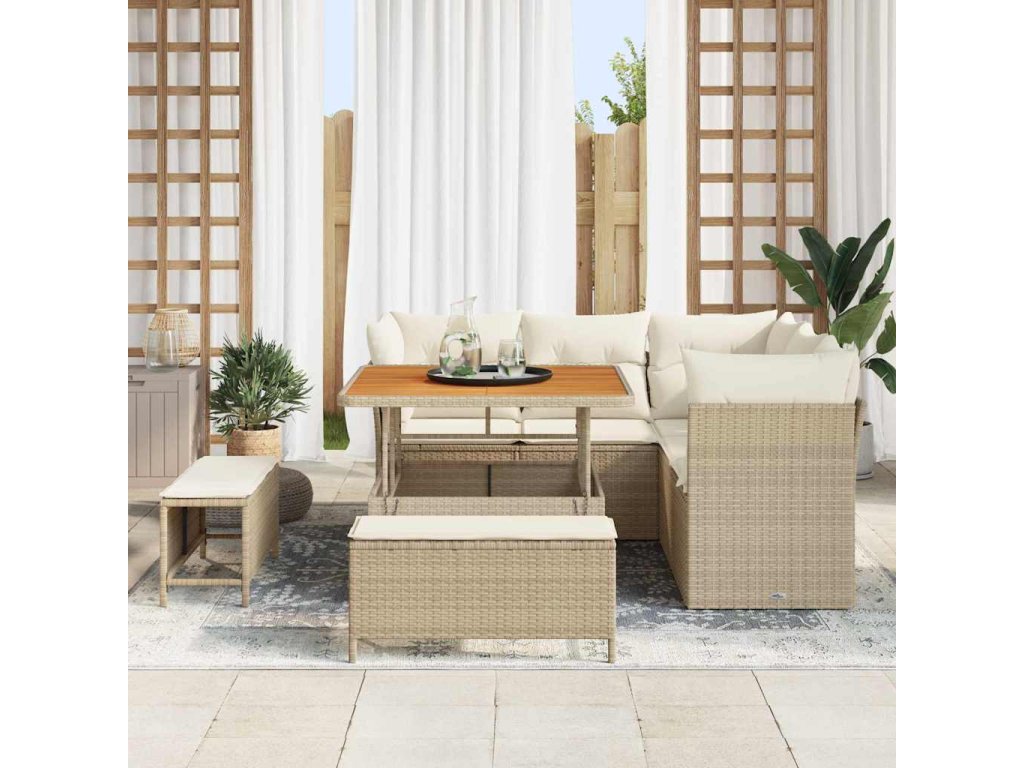 Tato zahradní sada nábytku spojuje moderní jednoduchost s praktičností, což dodává šmrnc tvému venkovnímu prostoru. Je připravená na jakékoliv počasí, kombinuje lesklý ocelový rám s krásou akáciového dřeva a odolného poly ratanu. Čisté linie a jednoduchý styl jí dodávají šmrnc a zajišťují, že je pohodlná. Ideální pro zahrady, terasy nebo patia, tahle sada je skvělá pro lenošení během letních dnů nebo setkání s přáteli, poskytuje dostatek místa k sezení a příjemnou atmosféru.