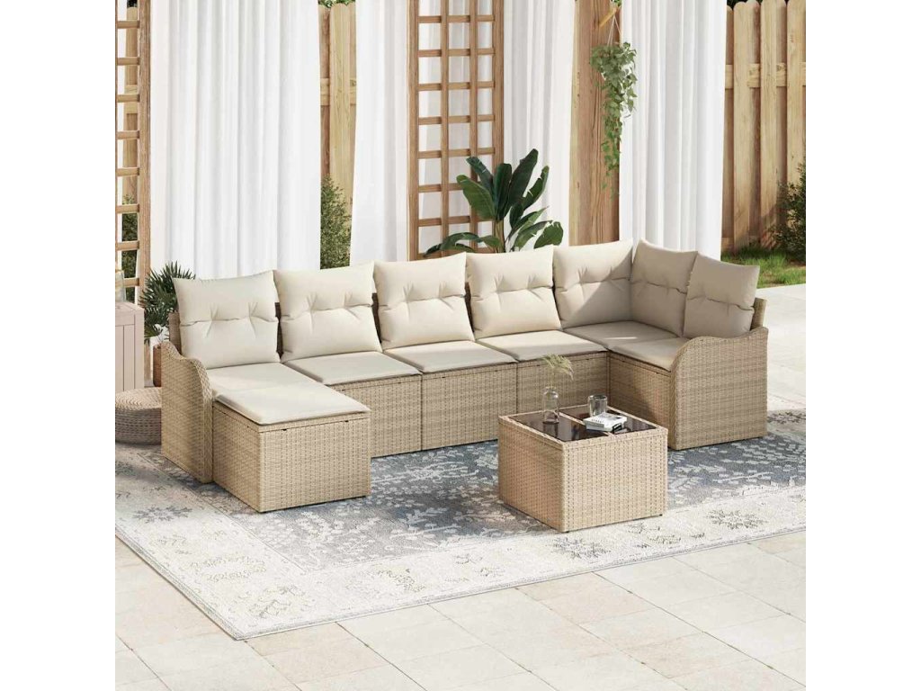 Sada zahradních pohovek 8 pcs Béžovo-bílá Poly ratan 3354470
