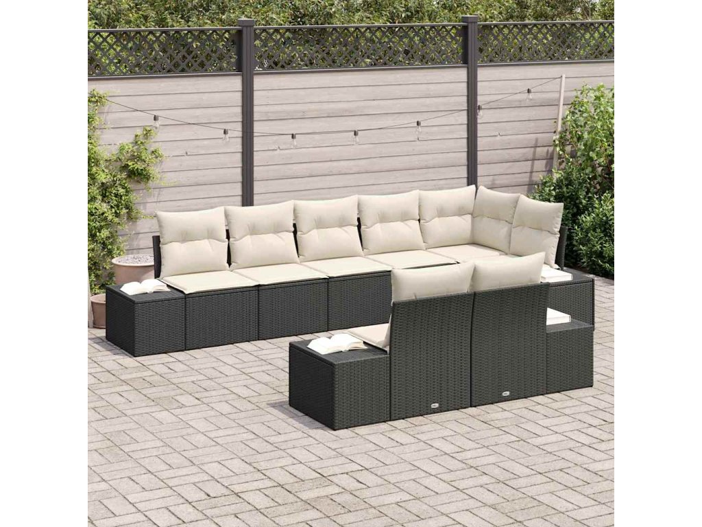 Sada zahradních pohovek 8 pcs Černá a krémová polyratan 3347107