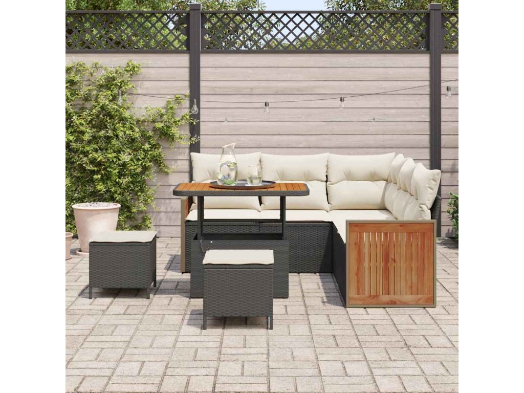 - Super materiály: Z poly ratanu a pevných akáciových částí, tohle je pohovkový set, co vydrží. Odolá dešti i slunci a vypadá prostě skvěle – hodí se do každého stylu zahrady.