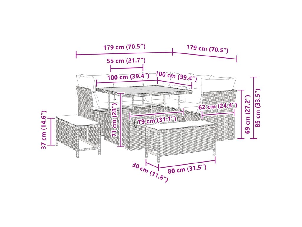 - Snadná údržba: Aby zůstala v pěkném stavu, jednoduše ji zakryj, když ji nepoužíváš, a snadno ji vyčisti. Díky jednoduchým tipům na péči je tahle sada nízkoudržbovým doplňkem tvého venkovního prostoru, takže ti vydrží komfortní a hezká dlouho.