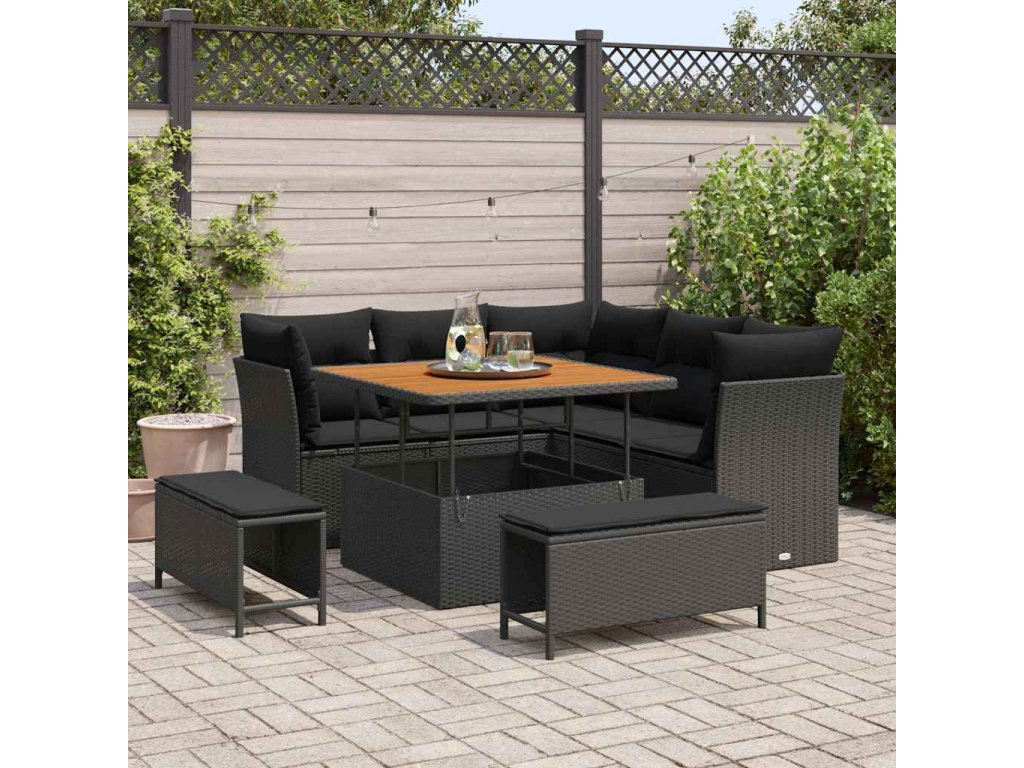 Sada zahradních pohovek 8 pcs Černá polyratan 3361474