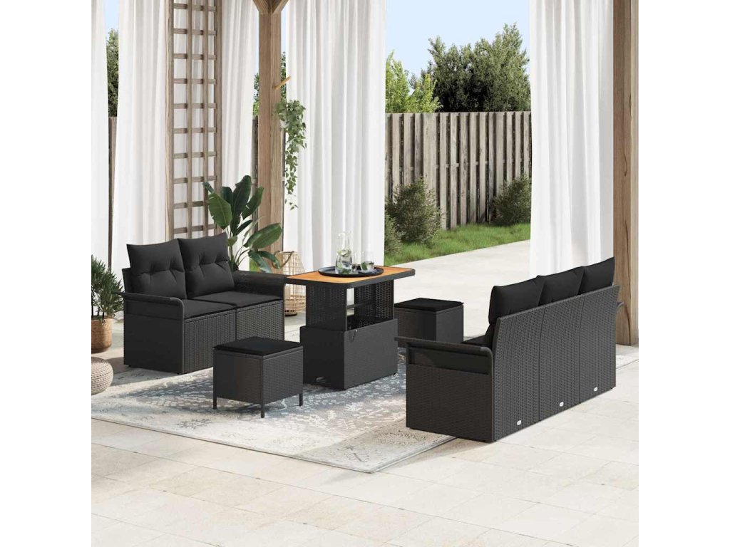 Sada zahradních pohovek 8 pcs Černá polyratan 3362079