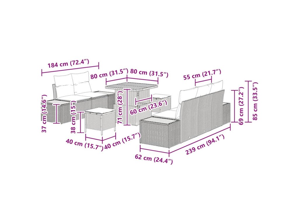Tato zahradní pohovková souprava má moderní a sofistikovaný vzhled, ideální pro venkovní relaxaci a zábavu na vaší zahradě nebo terase. Čisté linie a minimalistický design přinášejí funkční a stylové sezení pro rodinu a přátele. Modulární design umožňuje flexibilní uspořádání pro jakýkoli venkovní prostor, ať už pořádáte garden party nebo si užíváte klidného odpoledne.