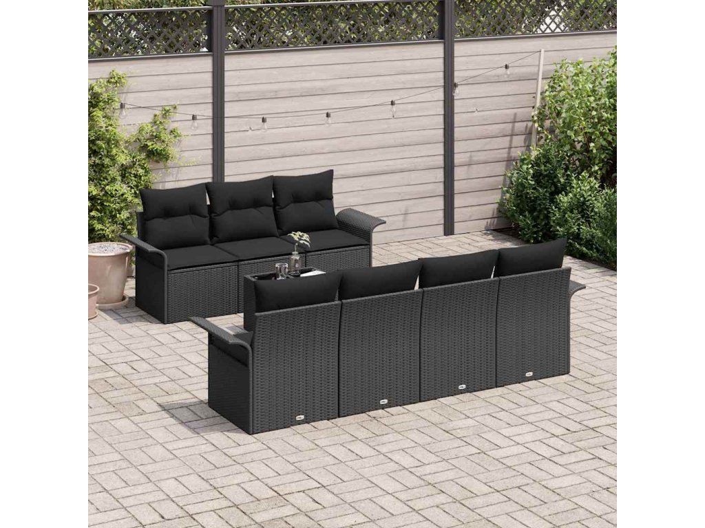 Sada zahradních pohovek 8 pcs Černá Polyratan a ocel a sklo 3353942