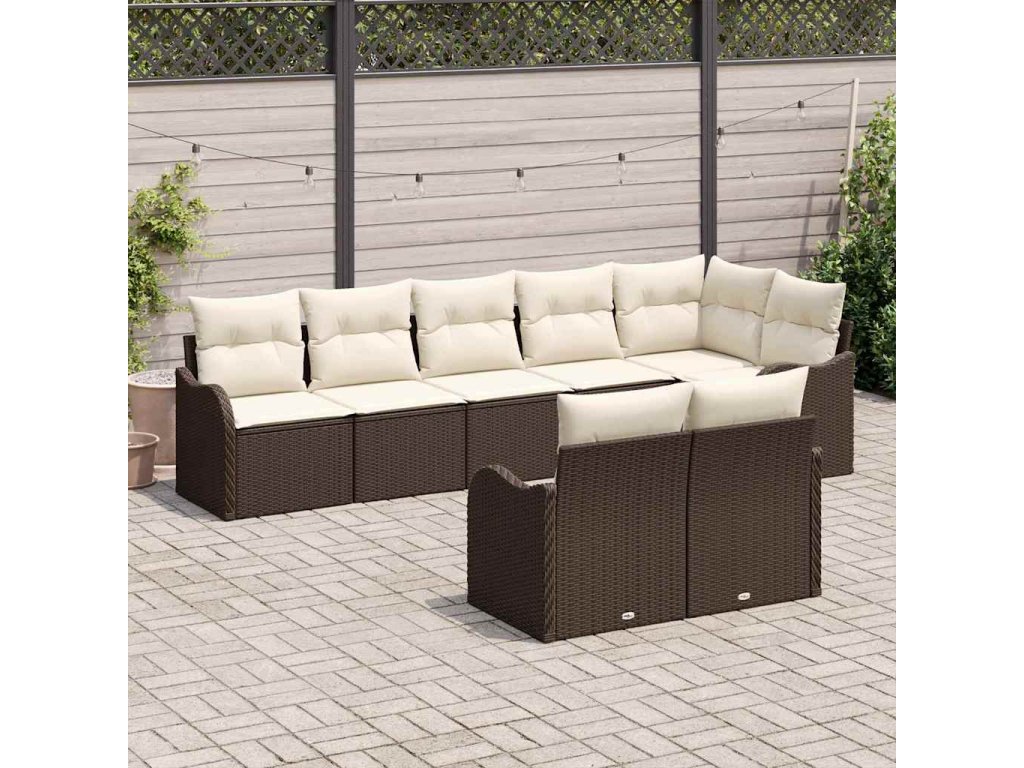 Sada zahradních pohovek 8 pcs Hnědá a bílá Poly ratan 3354417