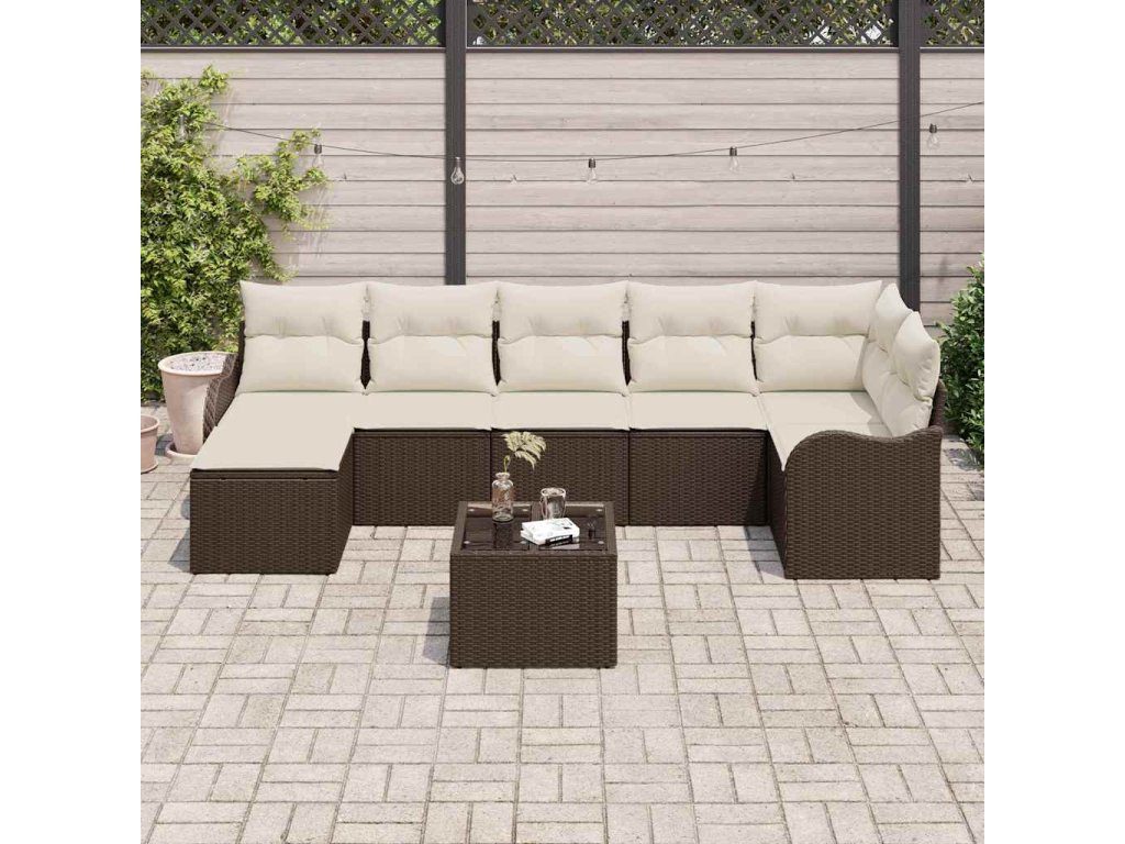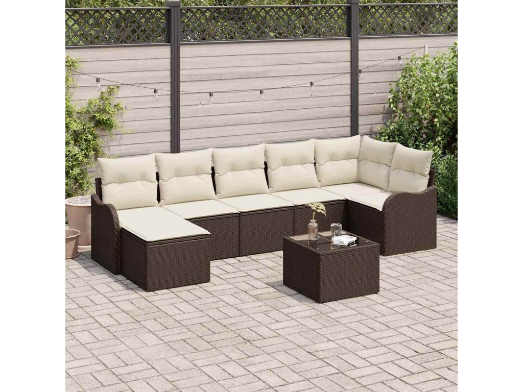 Sada zahradních pohovek 8 pcs Hnědá a bílá Poly ratan 3354467