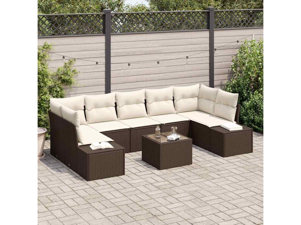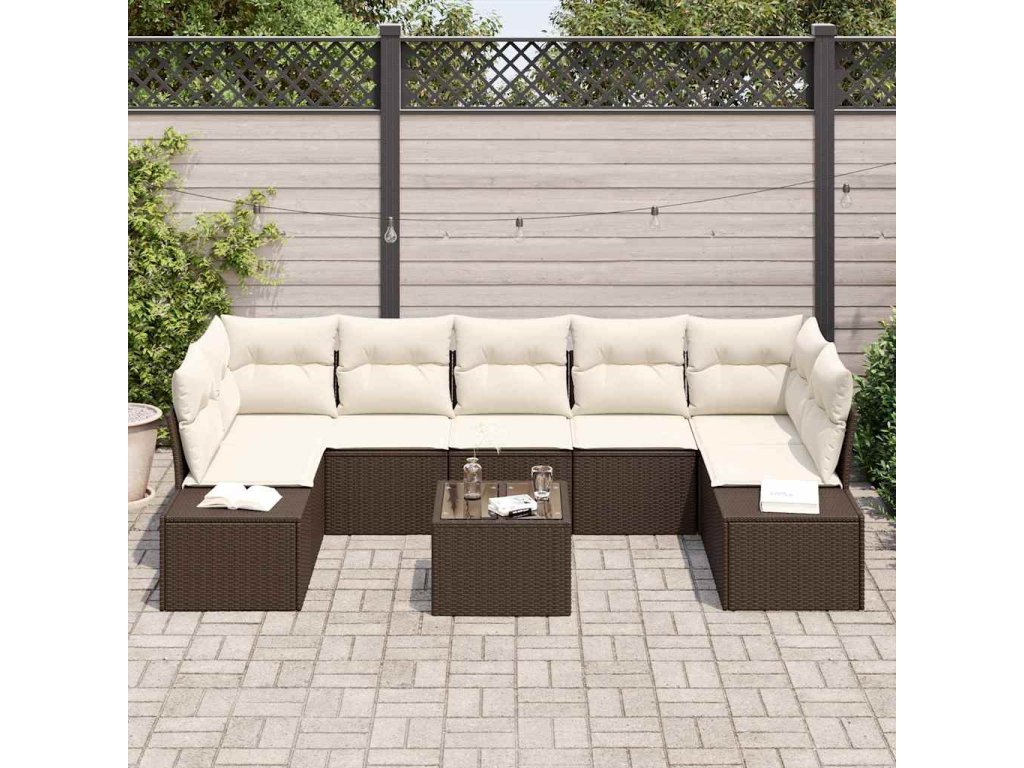 Sada zahradních pohovek 8 pcs Hnědá a krémová polyratan 3355647