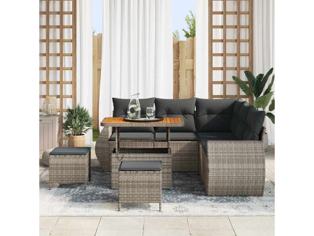 - Univerzální použití: Tento pohovkový set se bez problémů hodí do jakéhokoli uspořádání zahrady, terasy nebo patio a poskytuje dostatek sezení pro letní shromáždění. Je to přizpůsobitelná volba pro prostředí od prostorných zahrad po menší terasy, vytvářející přívětivý prostor pro rodinu a přátele.