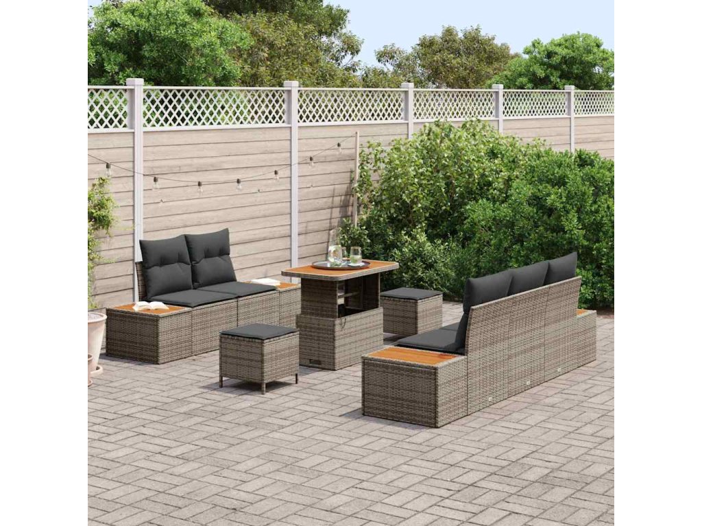 - Materiály: Sestává z poly ratanu, který je známý svou odolností vůči povětrnostním vlivům. Stabilitu zajišťují hladké, práškově lakované ocelové prvky. Masivní akáciové povrchy dodávají přírodní vzhled, který zvýrazní krásu vaší zahrady. Tato kombinace materiálů zaručuje dlouhou životnost.