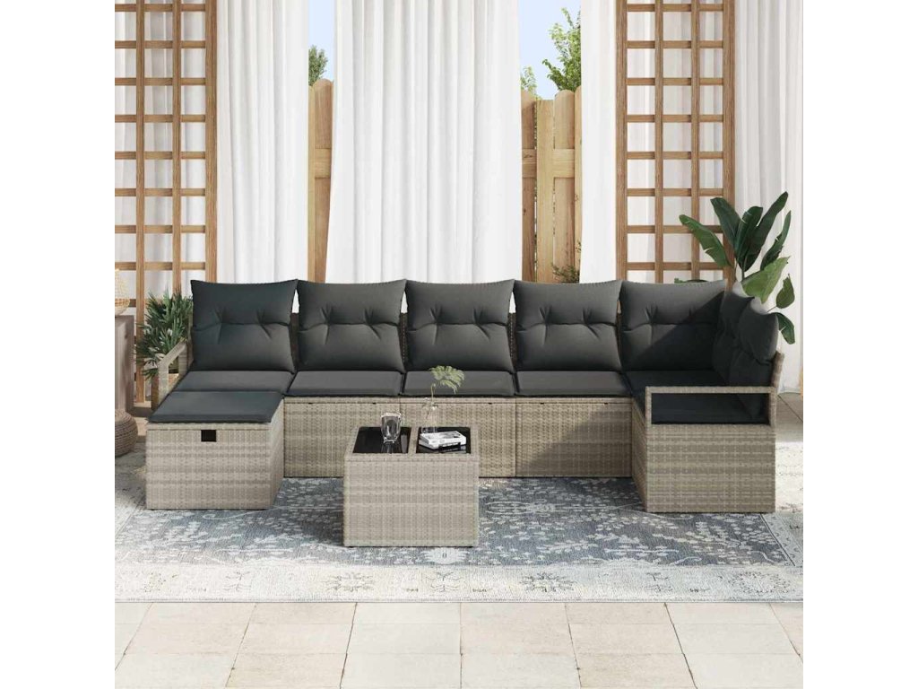 Sada zahradních pohovek 8 pcs Světle šedá Poly ratan 3360543