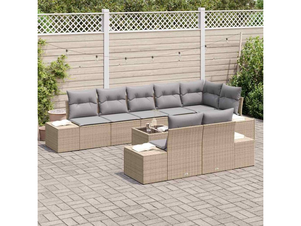 Sada zahradních pohovek 9 pcs Beige a šedá polyratan 3347120
