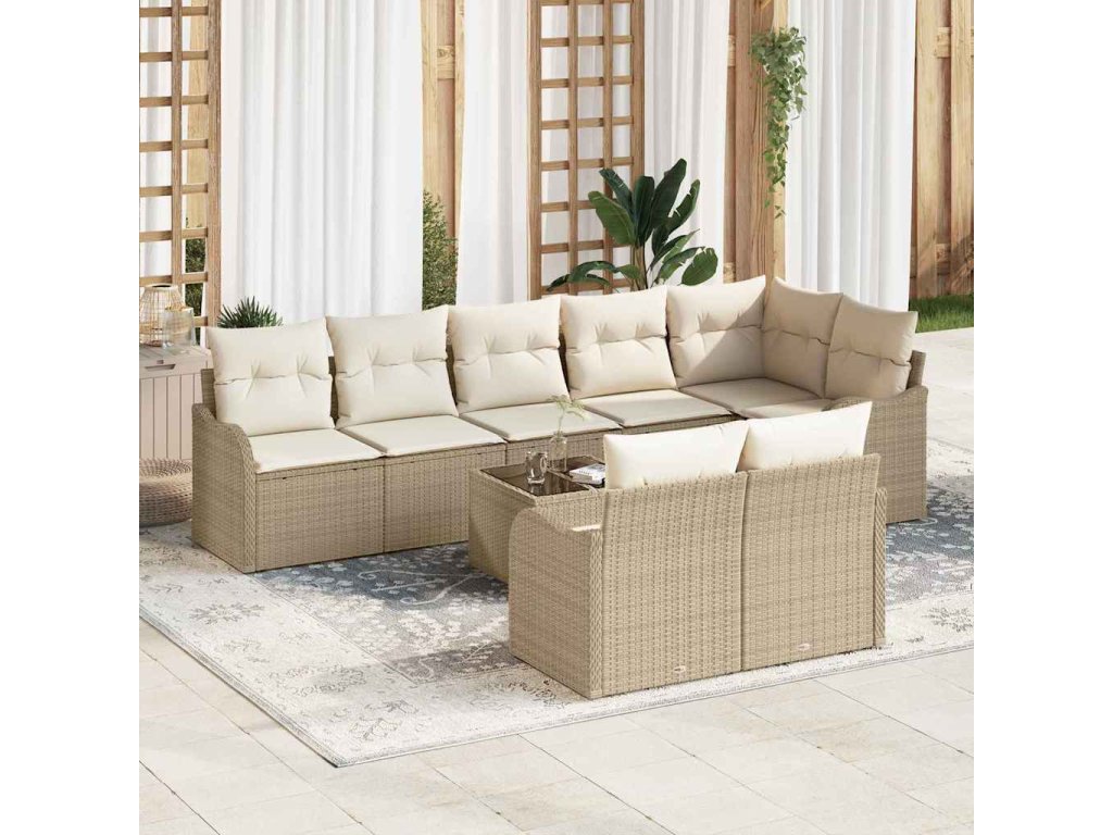 Sada zahradních pohovek 9 pcs Béžová a bílá polyratan 3354430