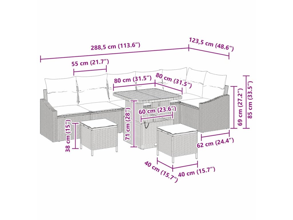 Sada zahradních pohovek 9 pcs Béžová a krémová 80 x 80 x 71 cm 3364621