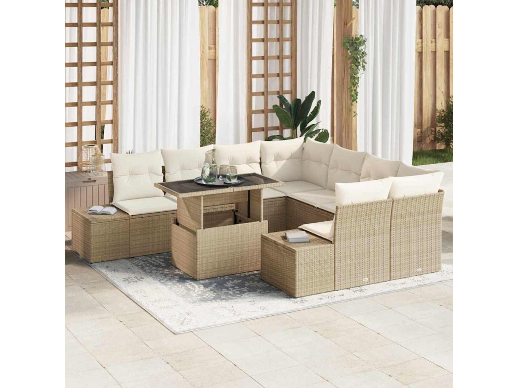 Sada zahradních pohovek 9 pcs Béžová a krémová polyratan 3349157