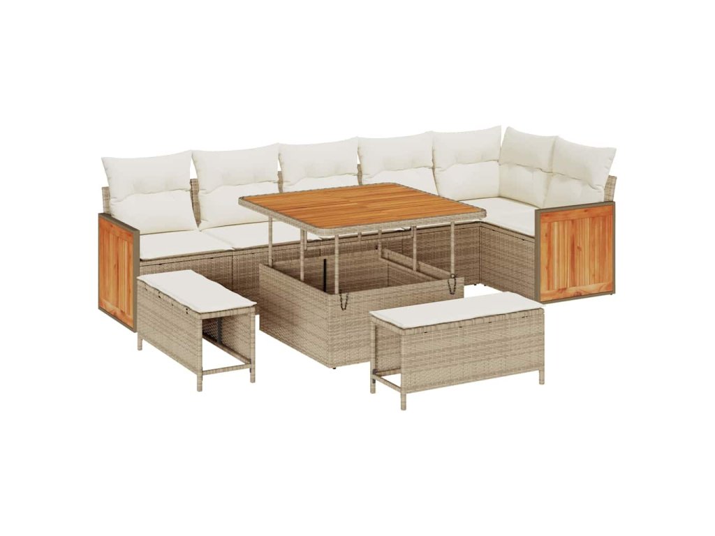 Sada zahradních pohovek 9 pcs Béžová a krémová polyratan 3365266
