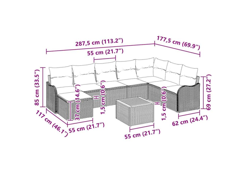 Sada zahradních pohovek 9 pcs Béžová Poly ratan 3347490