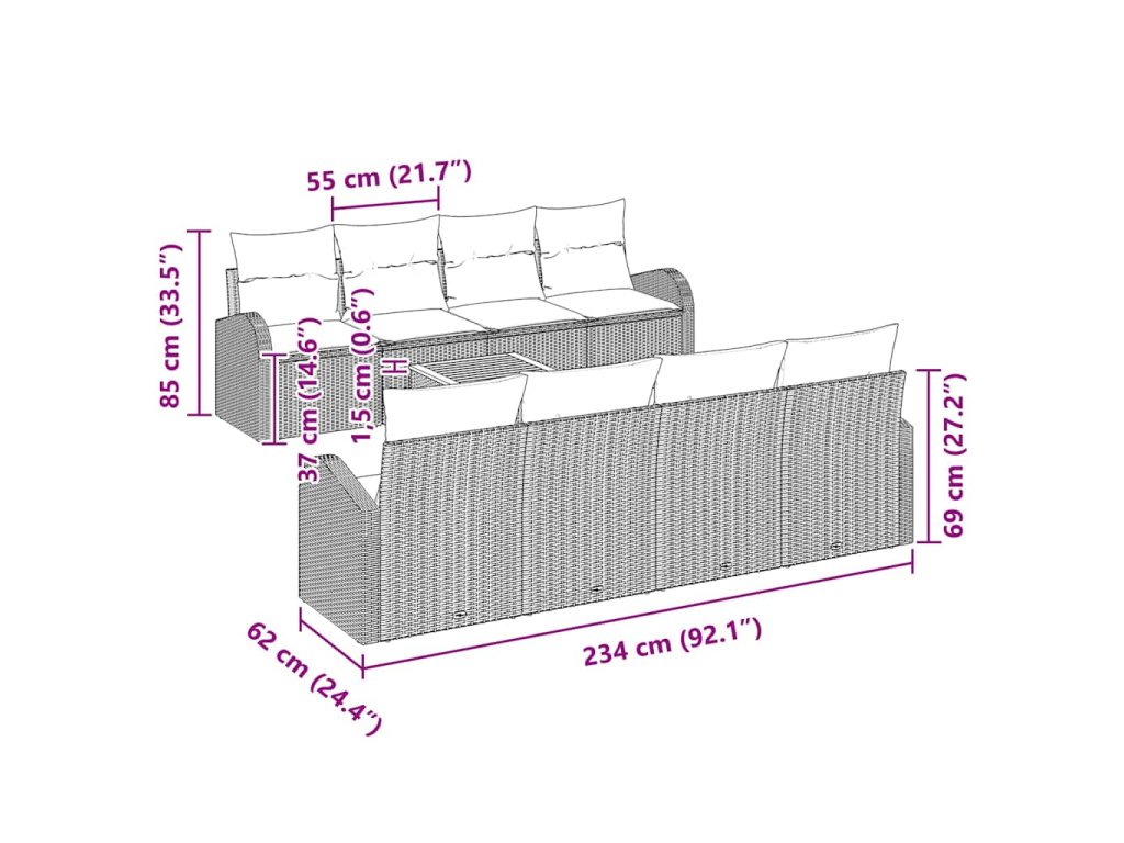 Sada zahradních pohovek 9 pcs Béžová Poly ratan 3347554