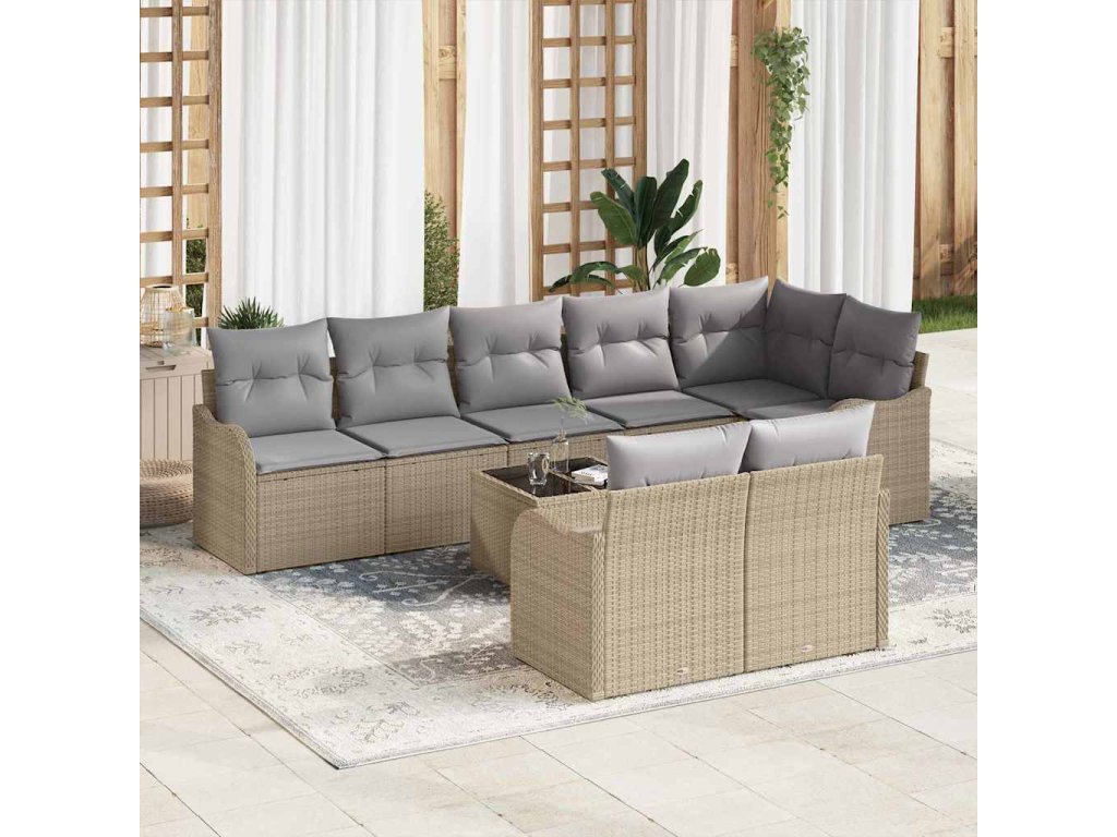 Sada zahradních pohovek 9 pcs Béžová polyratan 3345760