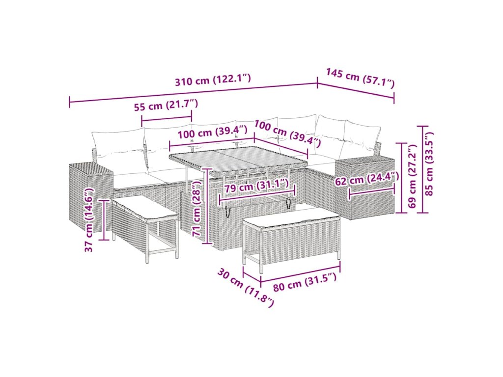 Sada zahradních pohovek 9 pcs Béžová polyratan 3362017