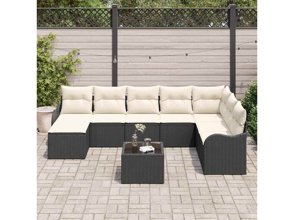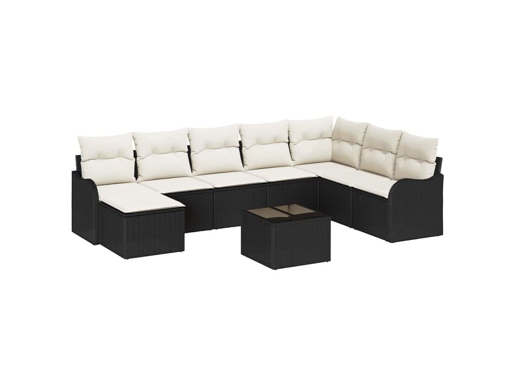 Sada zahradních pohovek 9 pcs Černá a bílá Poly ratan 3354496