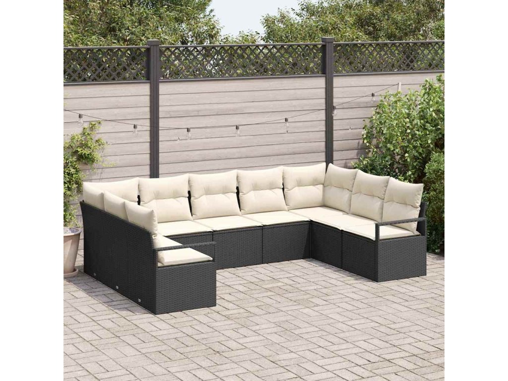 Sada zahradních pohovek 9 pcs Černá a bílá polyratan 3355206