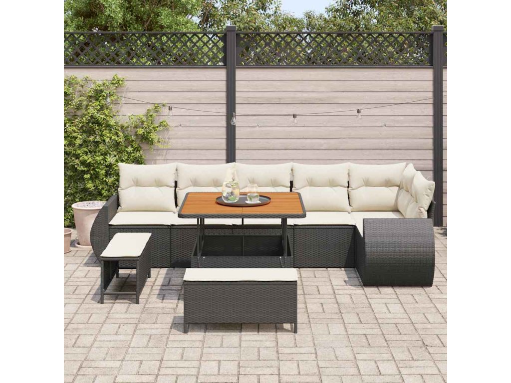 Sada zahradních pohovek 9 pcs Černá a krémová Poly Ratan 3363835