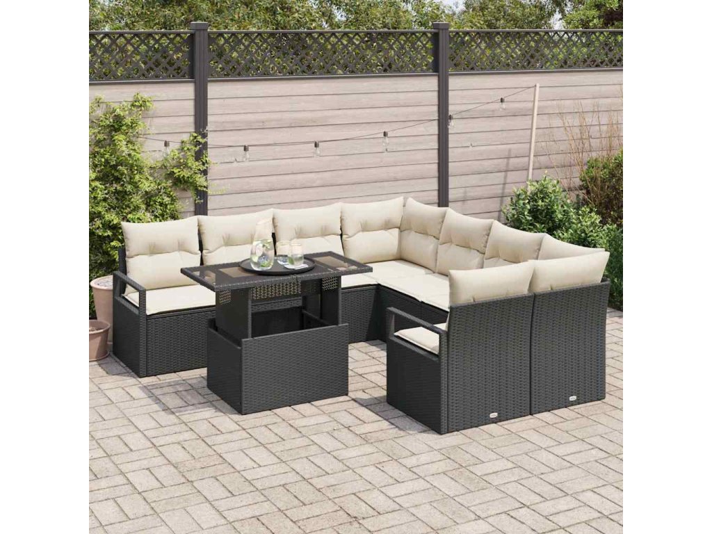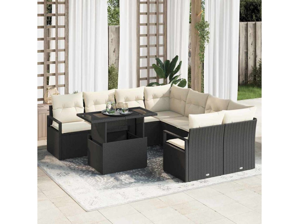 Sada zahradních pohovek 9 pcs Černá a krémová polyratan 3348793