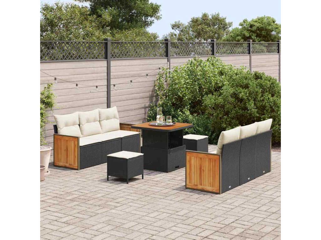 Sada zahradních pohovek 9 pcs Černá a krémová polyratan 3365205