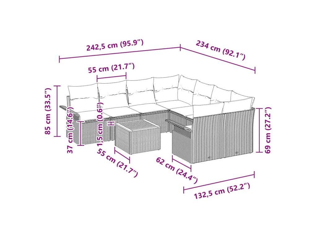 Zahradní sedací souprava je skvělé venkovní nábytkové řešení, které kombinuje styl, praktičnost a pohodlí. Je ideální pro zahrady nebo terasy a má moderní vzhled, který sedí do jakéhokoli venkovního prostředí. Její modulární design vám umožní měnit uspořádání pro různé akce nebo chvíle relaxace. S elegantním poly ratanovým povrchem je jak stylová, tak funkční, a vyzývá vás k odpočinku v přírodě.