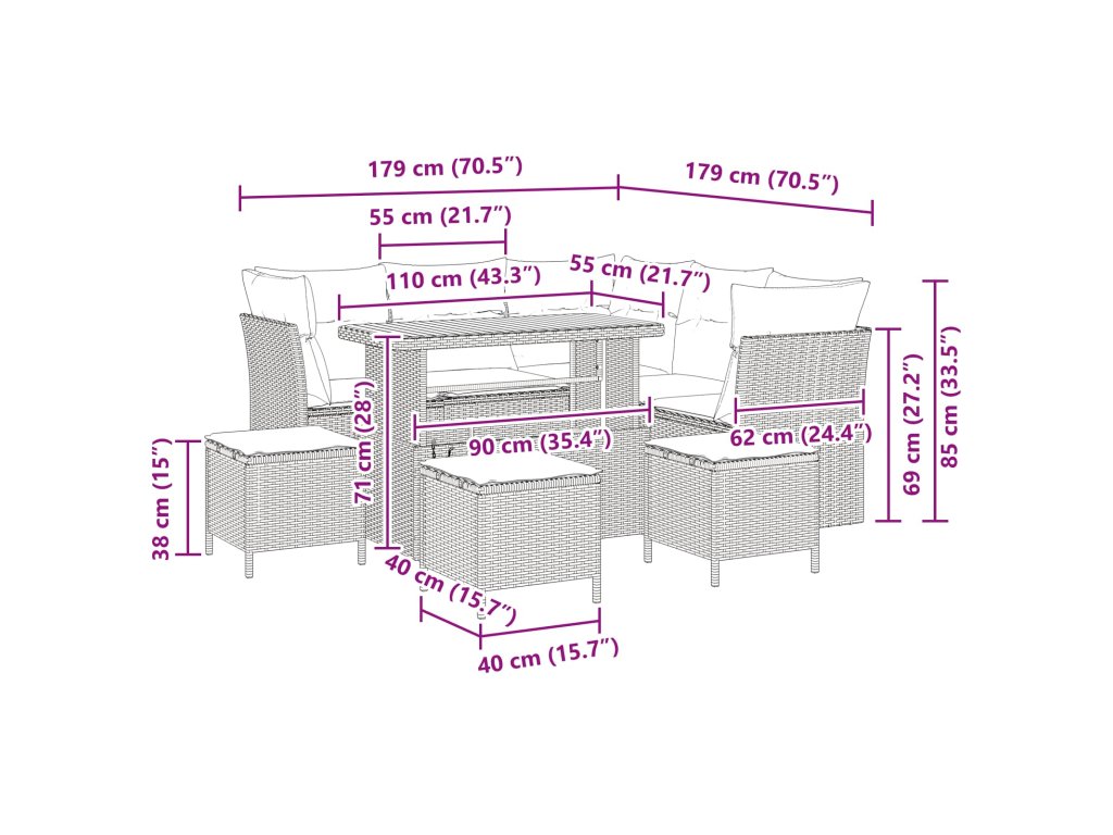 - Snadná údržba: Aby zůstala v pěkném stavu, jednoduše ji zakryj, když ji nepoužíváš, a snadno ji vyčisti. Díky jednoduchým tipům na péči je tahle sada nízkoudržbovým doplňkem tvého venkovního prostoru, takže ti vydrží komfortní a hezká dlouho.
